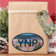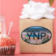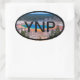 Un autocollant ovale à l'Euro pour le parc national de Yellowstone au-dessus d'une photo grand Prismatic du parc.