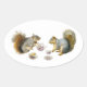 Deux écureuils versent du thé d'un minuscule set de thé de porcelaine sur ces stickers mignons.