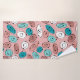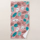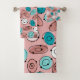 Cet ensemble de serviettes a une conception atomique moderne du milieu du siècle des contours ovales avec de petits cercles sur eux et des ovales de couleur solide à l'intérieur.
