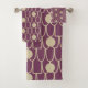 Cet ensemble de serviettes a un design art déco d'ovales, rectangles et cercles en lignes horizontales qui se répètent en rangs.