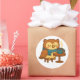 A glossy, vibrant round sticker featuring a cozy cartoon owl enjoying a steaming cup of coffee at a café table, set against a clean white background. With kawaii styling, warm details, and crisp contrast, this design is perfect for planners, laptops, water bottles, and anyone who loves cute animals and coffee culture.