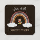 Carré arrondi à deux côtés cartes de visite pour professeur substitut avec un petit hibou debout sur un livre sous un arc-en-ciel. Utilisez le modèle fourni pour le remplir avec vos propres informations. © ArianeC Illustrations-Tous droits réservés