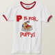 Le texte rouge lit "P est pour le chiot" sur ce T-shirts mignon de conception de chiot, tasses, sacs fourre-tout, cartes, et plus, grands pour n'importe qui de n'importe quel âge qui aime des chiens !