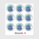 Sticker en Arbre de Noël Décoré Bleu Festif Pack. Arbre de Noël décoré festif dans un cadre circulaire de couleur bleue.