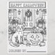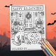 Pages d'activités thématiques Halloween pour enfants, ados ou adultes. Un chat noir assis sur un porche avant avec un citrouille. Beau papier épais pour faciliter la coloration.