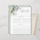 Conçue pour accompagner notre Classeur de recettes de Fête des mariées assorti, faisant partie d'une suite d'invitation à la douche nuptiale, cette jolie carte de recettes présente des feuilles botaniques gris luxuriants et des eucalyptus, et bordée d'un vert gris pâle d'eucalyptus (numérisé avec soin) et de jolies calligraphies de script lettrées à la main. Il y a beaucoup de lignes pour la recette, et le dos correspond à l'avant, pour que chaque invité puisse donner à la mariée deux recettes. Une marge a également été laissée sur la page pour tenir compte de la marge. CLIQUEZ ICI pour le Classeur de recette coordinateur : https://www.zazzle.com/collections/elegant_eucalyptus_green_botanical_bridal_shower-119330045467288535 Contacter le concepteur pour les produits correspondants. Copyright Invitations élégants, tous droits réservés.