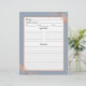 Voici la page de recette recto recto recto recto recto recto recto recto double conçu pour se coordonner avec son classeur correspondant. Le design, à l'avant comme à l'arrière, présente une jolie paire de feuilles d'or faux rose en haut à droite et en bas à gauche sur un arrière - plan bleu poussiéreux, ainsi que de la place pour toutes les informations dont vous avez besoin pour vos recettes. Si vous avez une question de design ou souhaitez voir ce design sur un autre produit, n'hésitez pas à me contacter à l'adresse jschmidtdesignworks@gmail.com . Design © Judith Schmidt.