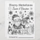 Jolie page de coloriage de Noël. Page de coloriage simple et facile pour les enfants. Santa Clause et un gentil renne dans un casquette d'hiver entouré de flocons de neige et d'un mignon bonhomme de neige. Jolie page d'activité pour un cours, une fête de Noël ou juste pour le plaisir de vos enfants.