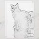 Chat aux cheveux longs, assis sur la table devant de multiples bobines de fil. En utilisant l'encre, la peinture, le crayon ou - couleur à votre goût.