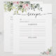Page de recette de verdure rose vif. Cette page de recettes de Fêtes des mariées élégante et élégante présente une magnifique aquarelle peinte à la main de couleur rose pâle. Trouvez les articles correspondants dans la collection Blush Pink Greenery.