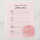 Cette page de remplissage customisée de 8,5 po x 11 po, en rose pâle avec un rose de corail pâle, est personnalisée et parfaite pour remplir un livre commémoratif de style classeur, un livre d'or ou un registre funéraire. Ce papier de remplissage carnet est facile à personnaliser - express votre propre sentiment, changer de nom, et supprimer ou modifier les dates. La page est pré-formatée pour que les participants ajoutent leurs coordonnées et un message lors de leur connexion, 4 noms par page. Vous devrez percer des trous pour adapter votre classeur. Tous droits réservés © 2015 Alan & Marcia Socolik