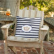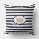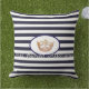 Ce grand oreiller extérieur est montré dans un joli imprimé bleu marine et blanc rayé. Front a un ovale, une couronne type Miss America en couleur or et du texte personnalisable. Customisez cet objet ou achetez-le tel quel.