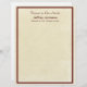 Cette en-tête minimaliste simple de 8,5 po x 11 po, dans un motif crème en détresse avec bordure couleur brique et lettrage assorti, est personnalisée et parfaite pour remplir des livres commémoratifs ou des livres d'hôtes de style classeur. Cette page de papier de remplissage carnet est facile à personnaliser - express votre propre sentiment, changer de nom, et supprimer ou modifier des dates. Vous devrez percer des trous pour adapter votre classeur. Commandez autant de pages que vous le souhaitez. Tous droits réservés © 2014 Alan & Marcia Socolik