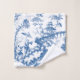 Motif classique et élégant vintage bleu et blanc Chinoiserie avec hommes escalades escaliers à pagode entourée d'élégants rouleaux et arbres exotiques, vignes et fleurs.