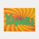 Retro 1970 hippie et trippy accueil mat style boho coloré. Bienvenue est en vert dans une police vintage des années 60 / les années 70 sur un arrière - plan de rayons tourbillonnants de soleil psychédélique en orange vif et jaune. Faites une déclaration audacieuse et colorée !