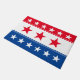 Ce mat de porte extérieur est montré dans un imprimé patriotique Juillet 4ème étoiles en rouge, blanc et bleu. Customisez cet objet ou achetez tel quel.