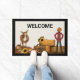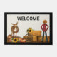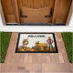 Automne Bienvenue Porte Mat sur mesure avec Cerf, Épouvantail, foin, tournesols et citrouilles.