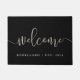 Un grand cadeau pour les jeunes mariés ou les nouveaux propriétaires, notre porte d'accueil personnalisée dans les caractéristiques noires chic et durable "bienvenue" dans un script de calligraphie moderne et élégant écrit à la main. Personnalisez avec votre nom de famille et l'année établie en lettres de bloc classiques.
