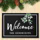 Bienvenue famille et amis à votre porte ce Noël avec ce tapis de portes festif. Il est décoré d'un faux-pied aquarelle sur un arrière - plan noir. Facile à personnaliser. Utilisez l'outil de conception pour modifier la taille, le style ou la couleur du texte. Lorsque nous créons nos oeuvres, vous ne trouverez pas ces images exactes d'autres créateurs. Aquarelle originale © Michele Davies.
