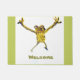 Tapis de porte bienvenu comportant une grenouille étirant ses bras à vous ! Grand pour des amoureux des animaux cette grenouille de danse est de ma peinture originale et le texte bienvenu peut être customisé.
