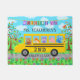 Ce joli panneau d'accueil pour la salle de classe est parfait pour les classes préscolaires ou primaires d'un enseignant. Elle montre un groupe d'animaux en peluche dans le bus scolaire. L'ours conduit, le renard écrit dans son carnet, le hibou regarde par la fenêtre, le cochon est un élève bien élevé, et le lapin lapin agite un drapeau sur le siège arrière. Autour du bus, c'est une journée heureuse avec des fleurs, des nuages, des arbres, des oiseaux et une belle bannière de bienvenue. Utilisez les modèles faciles pour ajouter votre texte. "Customiser" pour apporter des changements plus détaillés. Retournez à l'école dans le style avec ce design dynamique et très personnalisé.