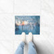Vue tôt le matin d'une fenêtre couverte de gel.