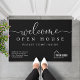 Voici notre porte d'accueil ouverte sur mesure, conçue spécialement pour les agents immobiliers. C'est plus qu'un simple tapis, c'est un énoncé qui reflète votre professionnalisme et votre engagement envers l'excellence. Montré dans une palette classique noir et blanc avec une police de script moderne et élégante pour "bienvenue", bien que toutes les couleurs soient modifiables. Personnalisez le modèle avec votre nom et vos coordonnées ainsi que votre logo. © Kimbellished, LLC