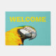 Photographie drôle de portrait d'un perroquet sur un arrière - plan turquoise, que vous pouvez personnaliser avec votre propre texte.