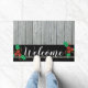 Paillasson Accueil en bois gris rustique de vacances