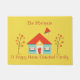 Vous êtes une famille instruite et heureuse. Montrez votre fierté à l'école à la maison aujourd'hui avec ce tapis de portes unique. Cette conception a une maison bleue avec un toit rouge. De part et d'autre de la maison se trouvent des orangers. Ci-dessus un modèle pour avoir entré le nom de votre famille. En-dessous se trouve "A Happy Home Educated Family" écrit en police tendance. Commandez dès aujourd'hui ! graphismes de Prettygrafik Design (https://www.etsy.com/shop/Prettygrafikdesign)