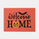 Faites savoir à tout le monde que vous êtes dans l'esprit d'Halloween avec ce tapis de porte Welcome Home avec araignées, chauves-souris et un citrouille. Un moyen facile de décorer pour Halloween et laissez les tromper ou les traiteurs savent qu'ils sont les bienvenus. Design amusant pour des vacances amusantes.