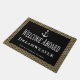 Beau et élégant tapis de bienvenue pour votre yacht ou bateau. Faux or art déco motif encadre l'espace texte. Monogramme avec le nom de votre bateau. Thème nautique avec bordure de corde, ancre et typographie. Bienvenue à bord avec votre nom de bateau et votre emplacement. Parfait pour les maisons de lac, la maison de plage et les bateaux aux quais.
