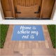 Chez moi c'est là que mon chat est un mat bleu script blanc. Parfait pour l'amoureux des chats.