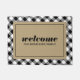 Typographie verte personnalisable en plaid noir et blanc avec arrière - plan en papier artisanal rustique.