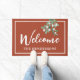 Bienvenue famille et amis à votre porte ce Noël avec ce tapis de portes festif. Il est décoré avec un arrière - plan de rouille aquarelle. Facile à personnaliser. Utilisez l'outil de conception pour modifier la taille, le style ou la couleur du texte. Lorsque nous créons nos oeuvres, vous ne trouverez pas ces images exactes d'autres créateurs. Aquarelle originale © Michele Davies.