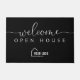 Voici notre porte d'accueil ouverte sur mesure, conçue spécialement pour les agents immobiliers. C'est plus qu'un simple tapis, c'est un énoncé qui reflète votre engagement envers l'excellence. Montré dans une palette classique noir et blanc avec une police de script moderne pour "bienvenue", bien que toutes les couleurs soient modifiables. Personnalisez le modèle avec le titre de votre événement et téléchargez le logo de votre entreprise. © Kimbellished, LLC