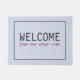 Natte simple avec la salutation "BIENVENUE" essentielle, suivie du texte "de l'autre côté". Il est fondamentalement au sujet de franchir le seuil de cette maison, mais il peut également lire dedans plusieurs autres manières. Sentez-vous libre pour ajuster le mot BIENVENU, ou la ligne des textes. La terre arrière de solide est bleu-clair. Elle est photographique et ne peut pas être ajustée, mais vous pouvez ajouter votre propre photo comme nouvelle couche si vous aimez. C'est le texte qui des sujets, bien que, ainsi mainteniez-le simple ! Tout le texte de défaut peut facilement être customisé.