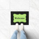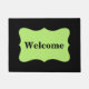 Bienvenue dans votre maison avec ce tapis de portes monogrammé personnalisé. Le tapis de porte est noir avec un emblème serpentin vert clair pour prouver une zone à personnaliser. Le mot "Welcome" personnalisable est le centre d'une tasse de porte design et tendance et est facile à personnaliser avec d'autres mots. Entièrement personnalisable.