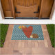 Un adorable hérisson devant un coeur décoré de fleurs. Le mot "Bienvenue". Le arrière - plan est un pois blanc au-dessus du bleu.