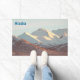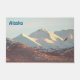 Un aigle chauve vole devant la chaîne Chugach enneigée près d'Anchorage, AK. Le texte personnalisable "Alaska" apparaît également.