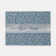 Natte avec un motif bleu personnalisé chic et beau de paillettes de faux avec une fausse bannière fascinante d'aluminium argenté et de parties scintillantes au milieu avec le texte bleu pour que vous personnalisiez avec votre nom ou tout texte. NOTEZ SVP : Ce sont les graphiques imprimés par appartement - paillettes non vraies, parties scintillantes ou aluminium argenté.