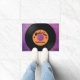 Les amateurs de musique de disque vinyle rétro portent le tapis avec Welcome comme nom d'album ou de disque et votre nom personnalisé comme groupe ou artiste. Amoureux de musique drôle et unique thème avec police vintage rétro et arrière - plan violet.