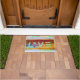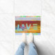 Natte de Bohème hippie de boho d'amour. Rouille vert clair, rose, jaune, couleurs de cuivre. Mot "AMOUR" peint sur le bois. Sortez dans le style avec cet article à la maison coloré, chic, à la mode, frais, moderne de décor.