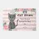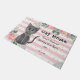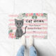 Citation de chat drôle pour accueillir tout le monde dans votre maison. L'Arrière - plan a des rayures pastel rose et blanc, des fleurs délicates et une parties scintillant dorée.
