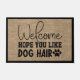 Présentez notre tapis de porte en faux burlap hilarant qui fera rire vos invités à haute voix! Le tapis dit "Bienvenue, j'espère que vous aimez les cheveux de chien". Parfait pour les amoureux de les chiens, ce tapis de porte est à la fois sarcastique et charmant. Le tapis est fait de matériaux durables qui résisteront à l'utilisation quotidienne et aux conditions météorologiques. Faites une déclaration tout en gardant vos sols propres avec ce tapis de porte unique.