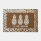Ce tapis de trois ananas est idéal pour votre maison ou un cadeau pour un nouveau propriétaire personnalisé avec votre nom de famille sur un motif d'impression en bois tressé. (Ce n'est pas du bois réel, c'est une illustration imprimée en couleur.)
