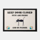 Garde la porte fermée ! Matelas de sécurité pour chats d'intérieur. Animaux domestiques à l'intérieur." Animaux en patrouille.