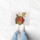 Un dessin au crayon couleur d'une pomme rouge et verte orne ce tapis de portes !