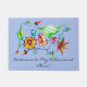 Paillasson Aquarelle Art Déco Exotique Fleurs - Gris Bleu