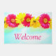 Ce tapis de portes personnalisé est conçu avec une image unique de marguerites jaunes et roses profondes, numériquement modifié pour ressembler à un tableau aquarelle. "Bienvenue" est ajouté en gros caractères faciles à lire dans une couleur qui correspond aux fleurs. Le tapis mesure 24" x 36", et il a un front lisse et un dossier en latex antidérapant. Il a également un bord renforcé pour résister à la friture, est à la fois résistant à la mouche et à la moisissure, et se nettoie facilement avec un jet d'eau. Idéal pour les entrées couvertes comme les porches, appartements, bureaux, condos, etc. N'hésitez pas à me contacter par Zazzle si vous avez des questions sur ce tapis ou souhaitez aider à transférer cette conception à un autre article. Je suis heureux d'aider à assurer l'image et le lettrage correctement.